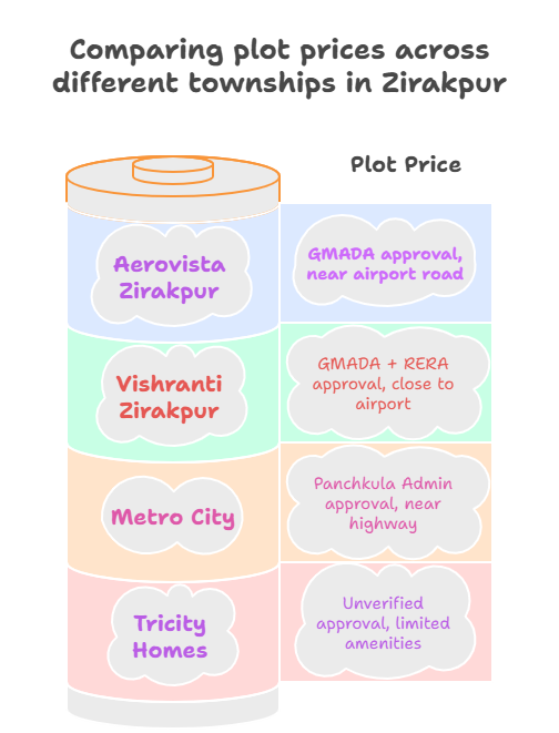 Let’s compare Vishranti Zirakpur plot rates with similar townships: